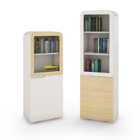 ویژگی‌ها دارای 2 تا 3 طبقه با درب شیشه‌ای و فریم چوبی برای نگهداری کتاب، زونکن و وسایل تزئینی و نمایشی، دارای 2 طبقه با درب چوبی برای نگهداری کتاب و زونکن